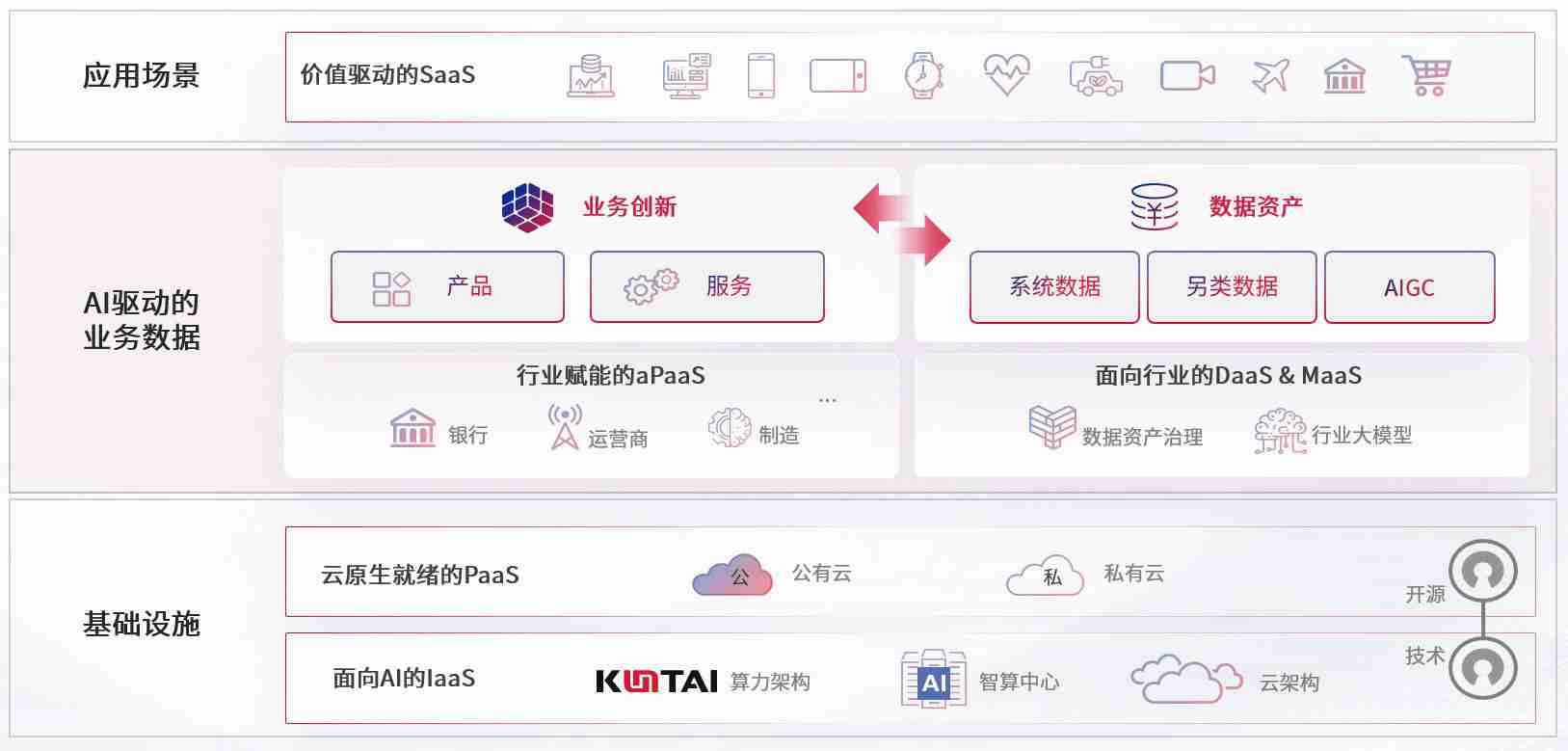 数字时代,,,围绕企业数字化转型的关键要素,,,人生就是搏数码开创性的提出数云融合战略和技术体系框架,,,,着力在云原生、、、、数字原生、、AI原生和信创产业上架构产品和服务能力,,,为处在不同数字化转型阶段的快消零售、、、、汽车、、金融、、医疗、、政企、、、教育、、运营商等行业客户提供泛在的敏捷IT能力和融合的数据驱动能力,,构建跨界融合创新的数字业务场景和新业务模式,,,,助力企业级客户建立面向未来的核心能力和竞争优势,,全面推动社会的数字化、、智能化转型升级。。。。